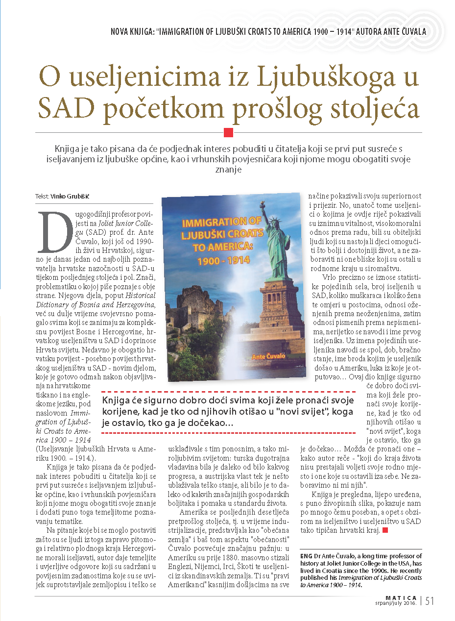 Stefanovic-Djačic, Zorka. “O ulozi naših iseljenika u Južnoj Americi za vrijeme Prvog svjetskog rata.” Jugoslavenski odbor u Londonu; u povodu 50-godišnjice osnivanja. (Zagreb: JAZU, 1966), pp. 521-538.