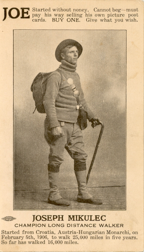 Some one-hundred years ago, the American press (and, I’m sure, elsewhere as well), reported on the then young, and I must say, very brave Croatian adventurer, Joža Mikulec.  He set out to circumnavigate the globe on foot in the span of five years.  With the start of this journey, Joža, one might say, became a perpetual wanderer.  Mostly hiking, he traveled the world some 28 years and achieved a degree of fame for having collected more than 30,000 autographs of world-famous people.  From time-to-time, some of the more notable American newspapers kept track of his wanderings across this globe of ours.