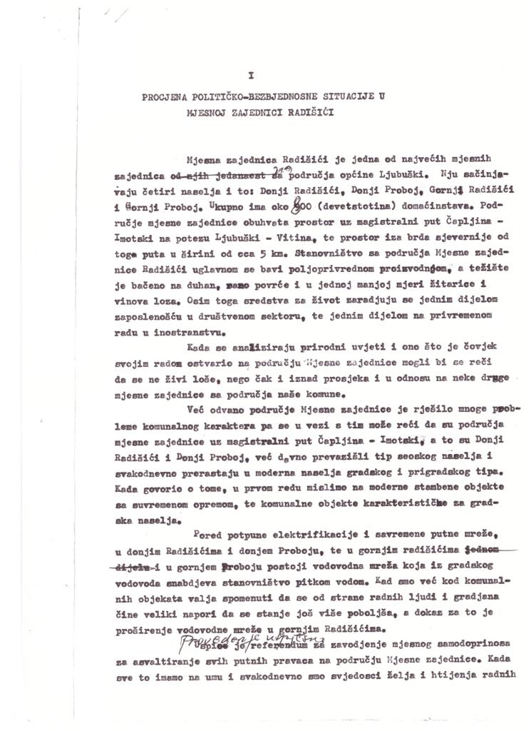 Dokument iz 1979., kojeg ovdje donosimo, je ilustracija njihove „budnosti” i straha. Režimu odani u svakoj mjesnoj zajednici imali su „na oku” i budno pratili unutarnje neprijatelje, one po našim selima, kao i vanjske, one u emigraciji.